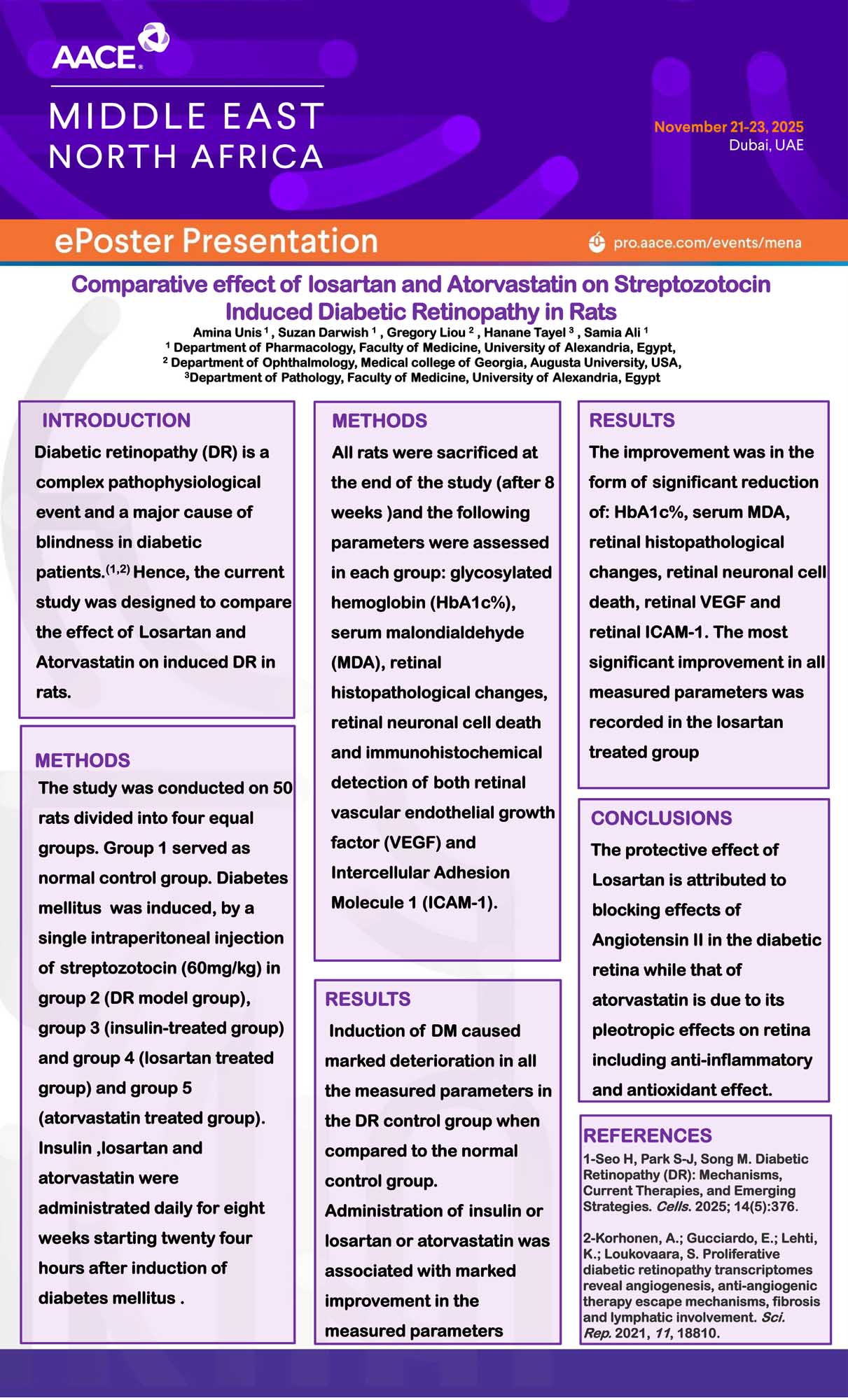 Comparative effect of losartan and Atorvastatin on Streptozotocin Induced Diabetic Retinopathy in Rats.