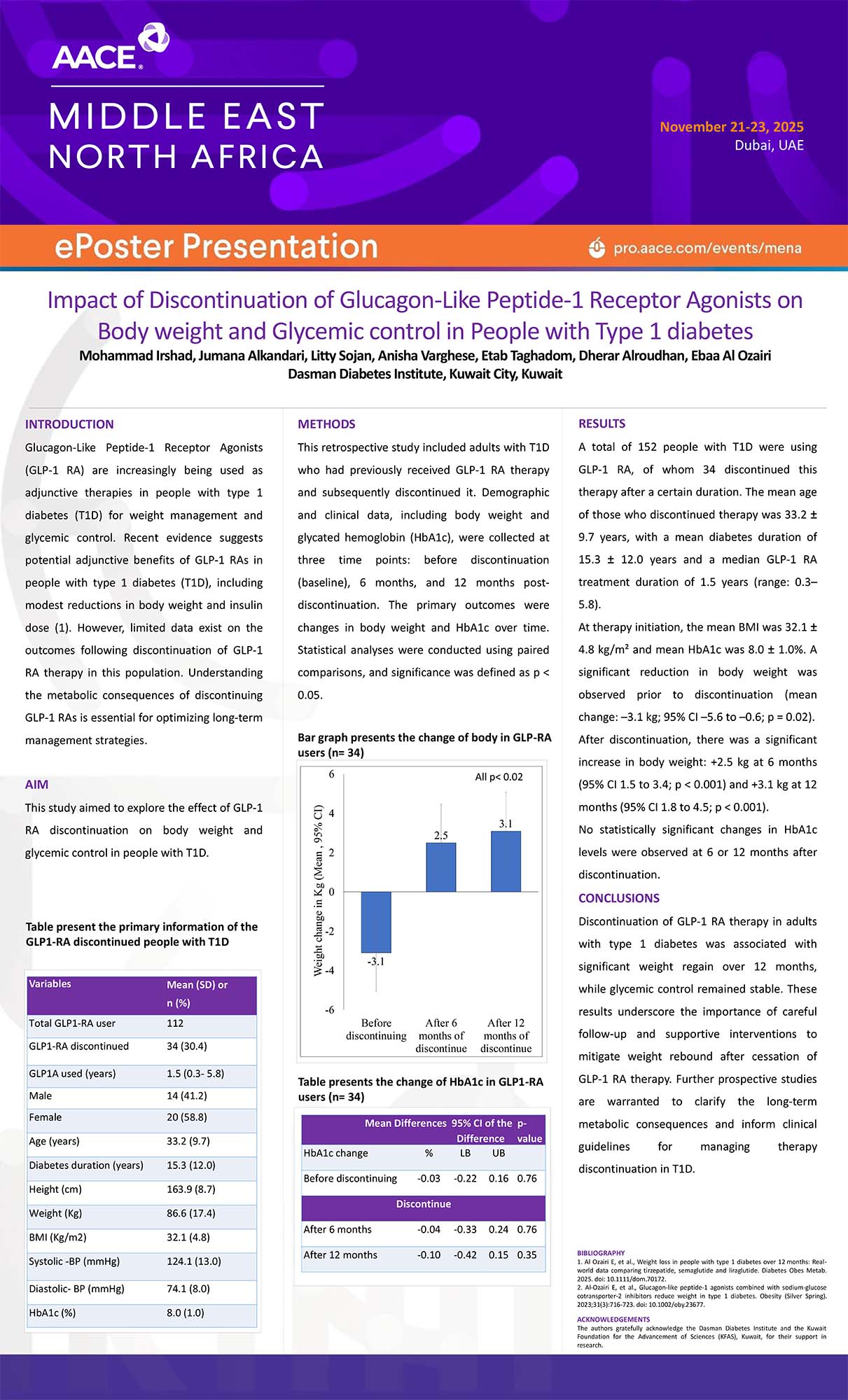 Impact of discontinuation of Glucagon-Like Peptide-1 Receptor Agonists on body weight and glycemic control in People with Type 1 diabetes