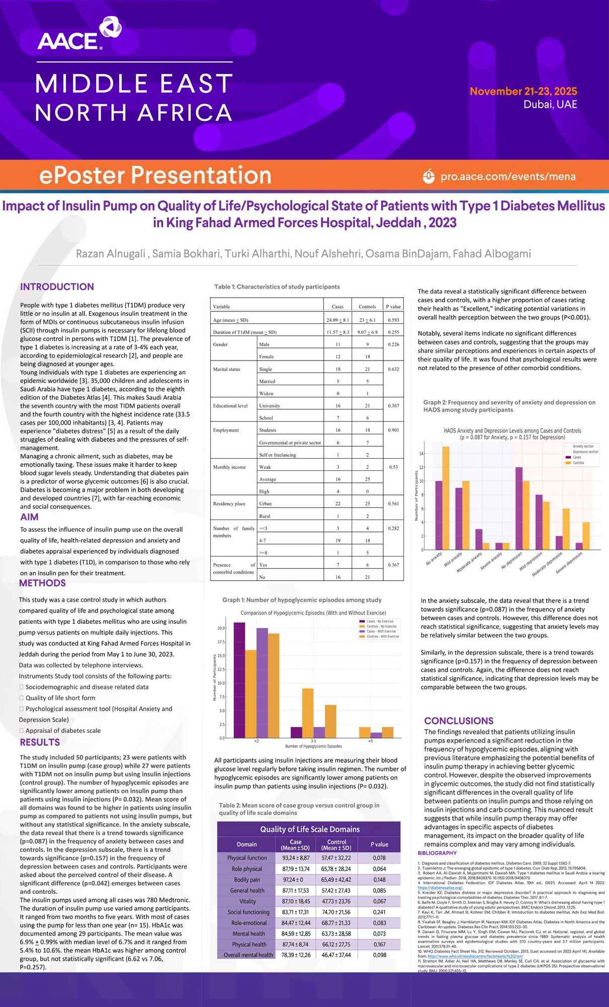 Impact of Insulin Pump on Quality of Life/Psychological State of Patients with Type 1 Diabetes Mellitus in King Fahad Armed Forces Hospital, Jeddah, 2023