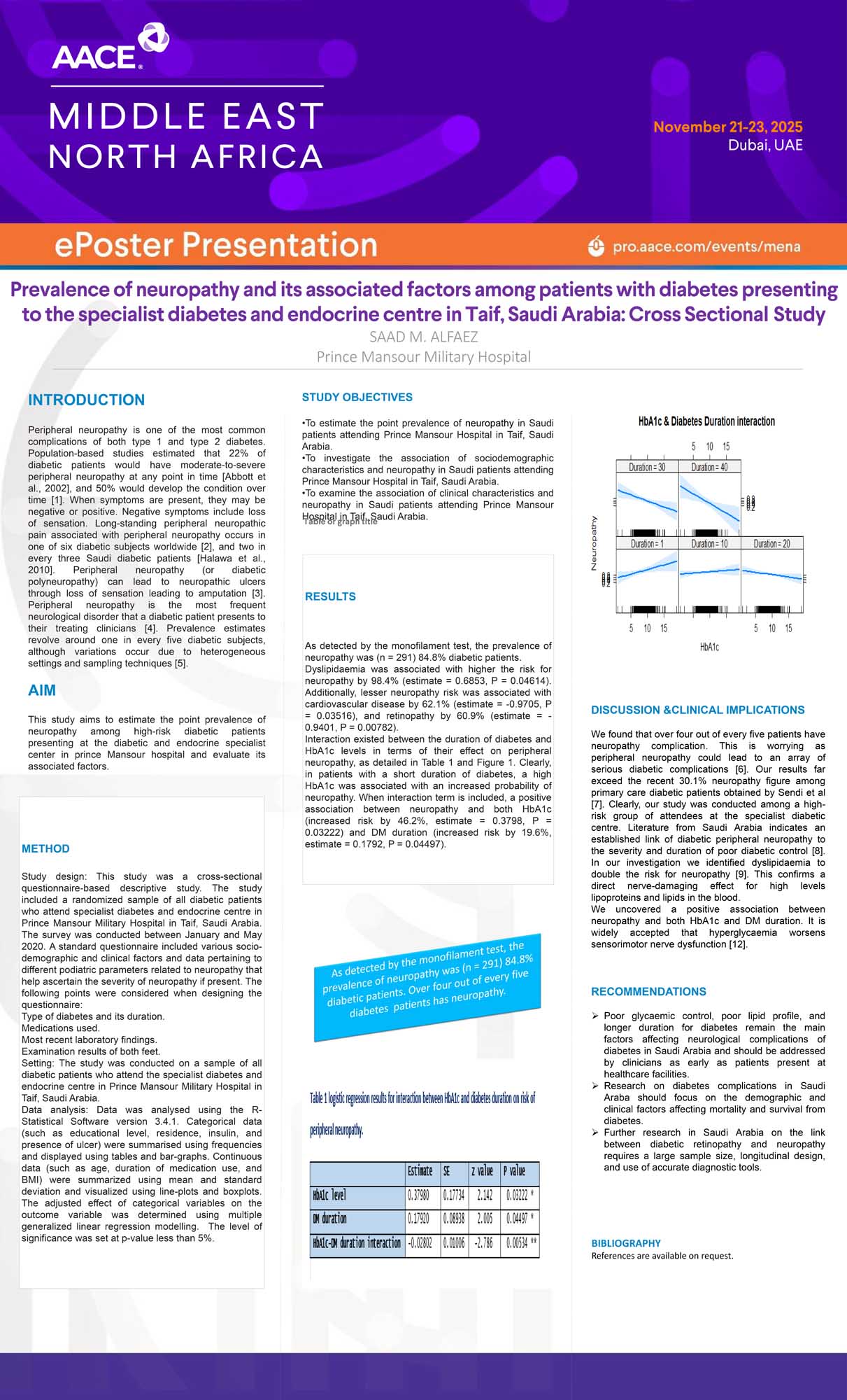 Prevalence of neuropathy and its associated factors among patients with diabetes presenting to the specialist diabetes and endocrine centre in Taif, Saudi Arabia : Cross Sectional Study