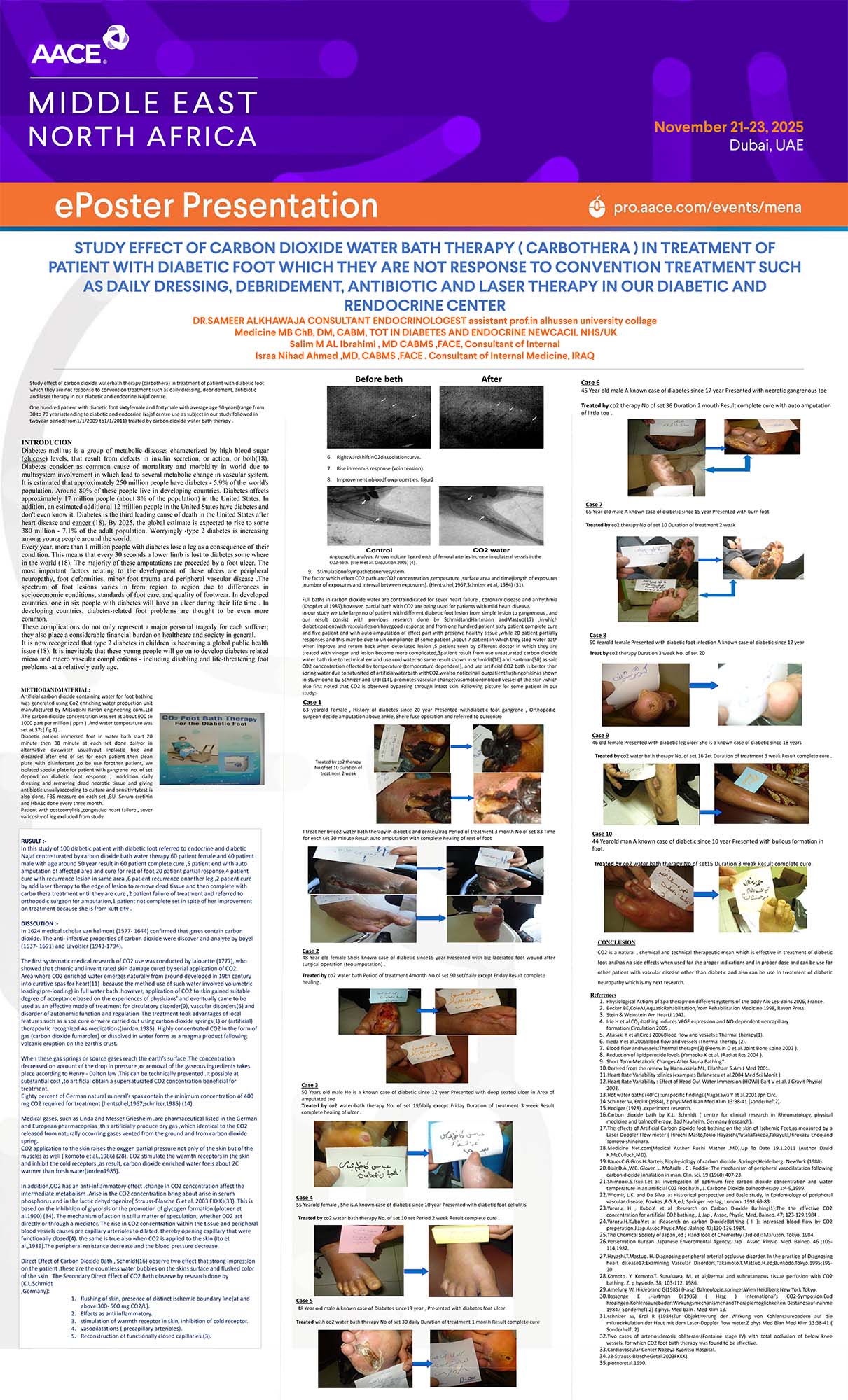 Study effect of carbon dioxide water bath therapy (carbothera) in treatment of patient with diabetic foot which they are not response to convention treatment such as daily dressing, debridement, antibiotic and laser therapy in our diabetic and endocr