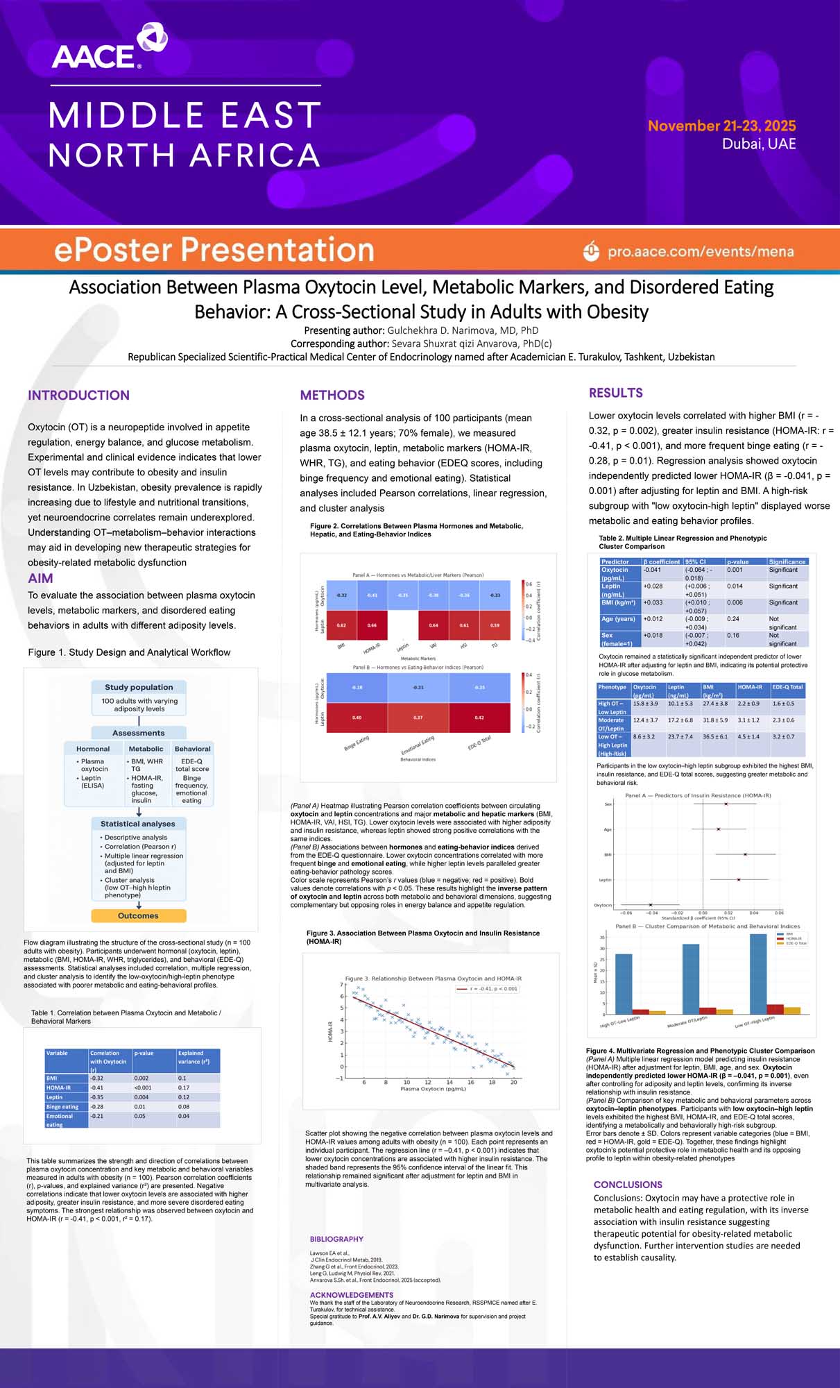 Association between plasma oxytocin level, metabolic markers, and disordered eating behavior: a cross-sectional study in adults with obesity.