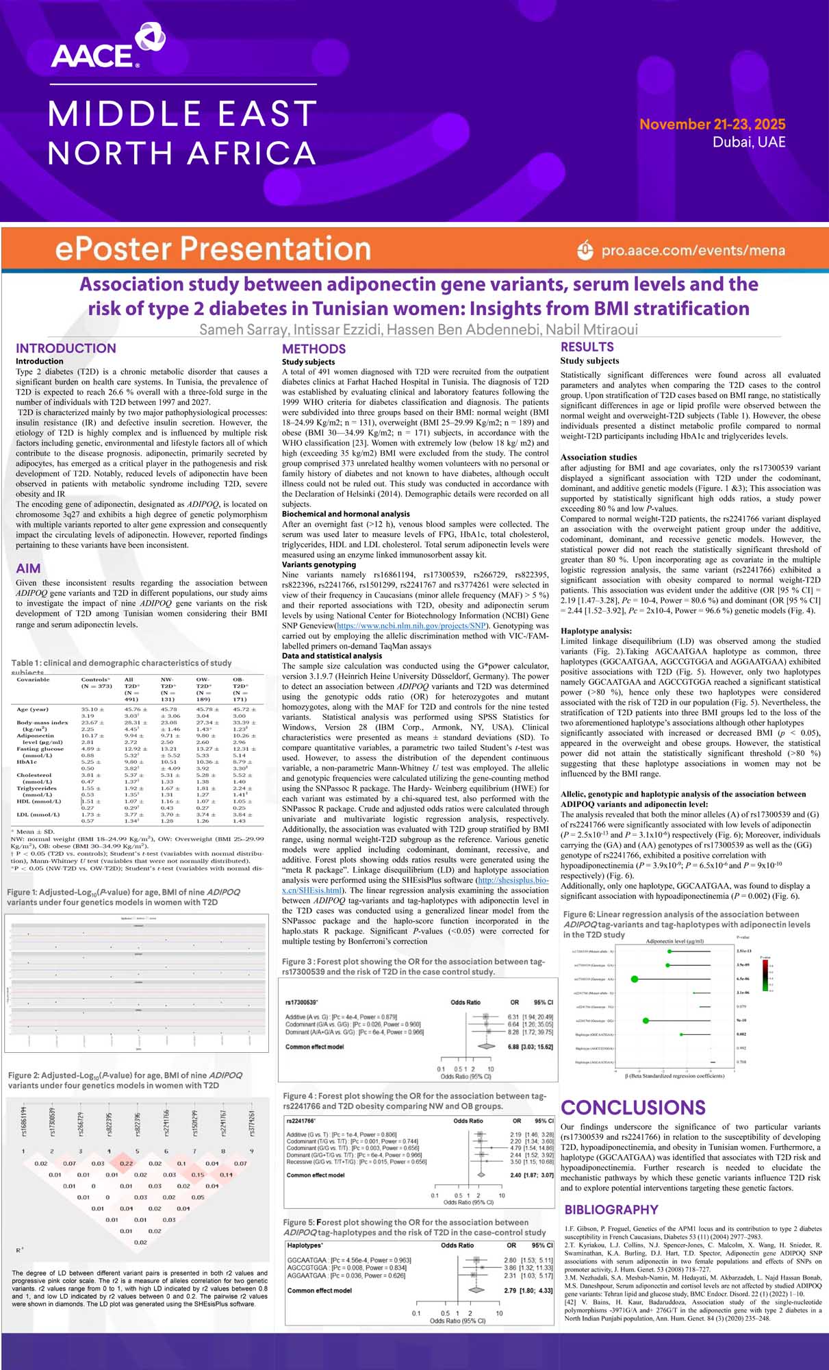 Association study between adiponectin gene variants, serum levels and the risk of type 2 diabetes in Tunisian women: Insights from BMI stratification